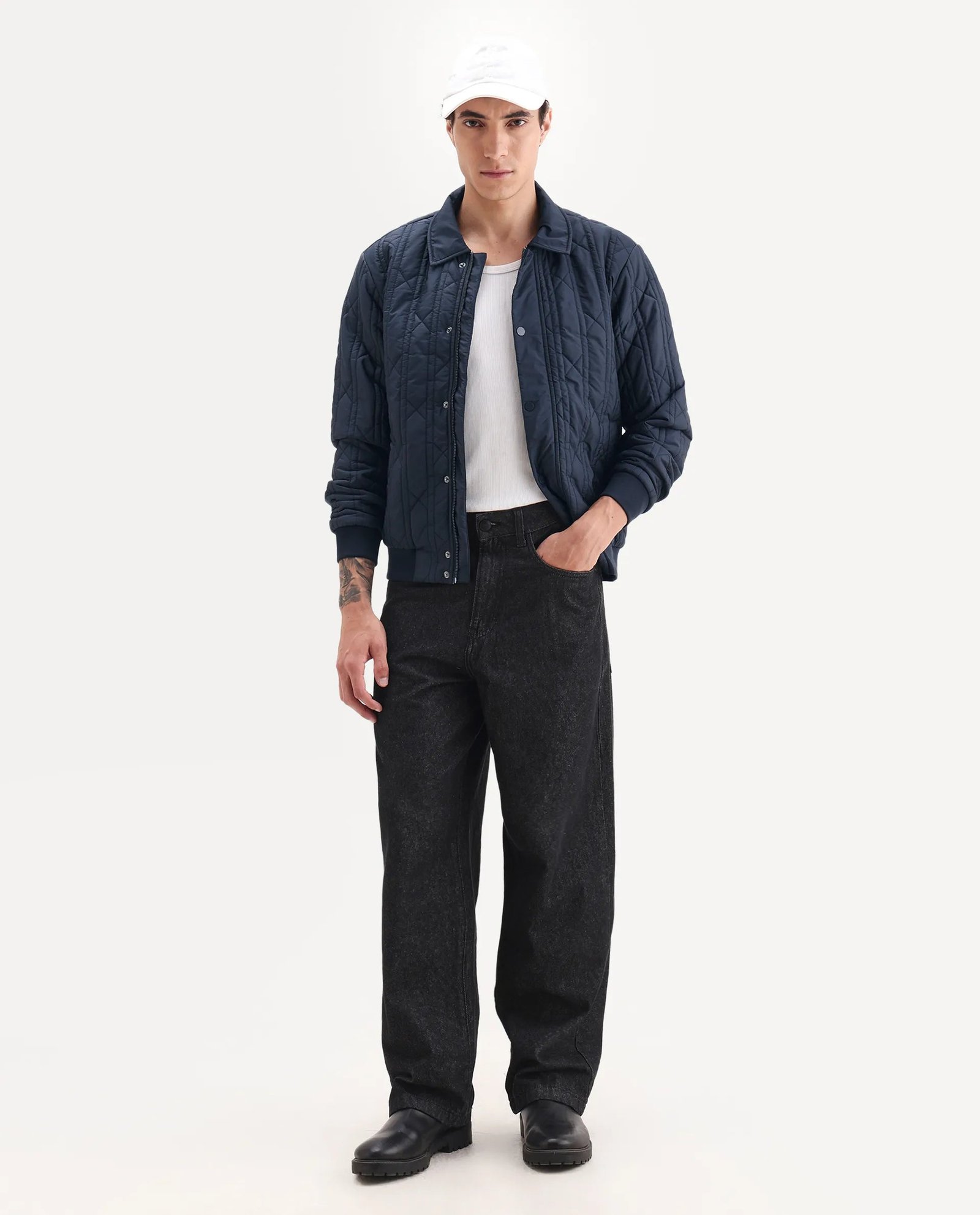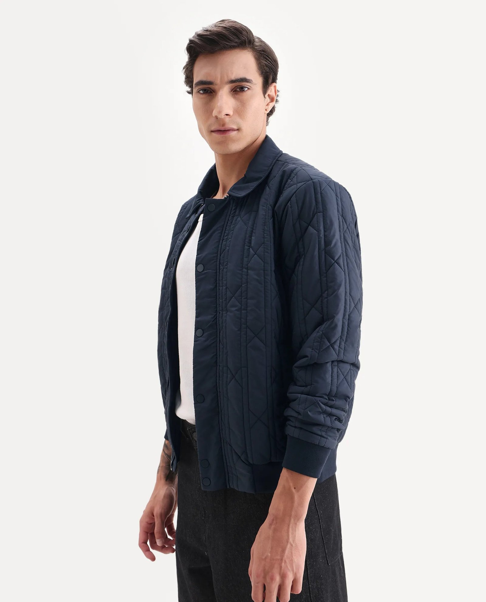 Crafted from durable polyester. the Rare Rabbit Men’s Boscod jacket offers a relaxed fit with a collared neck design. ensuring comfort and style. Its dark navy color paired with a subtle geometric print adds a modern. sophisticated edge suited for versatile wear. Ideal for layering. this jacket balances functionality with contemporary aesthetics.