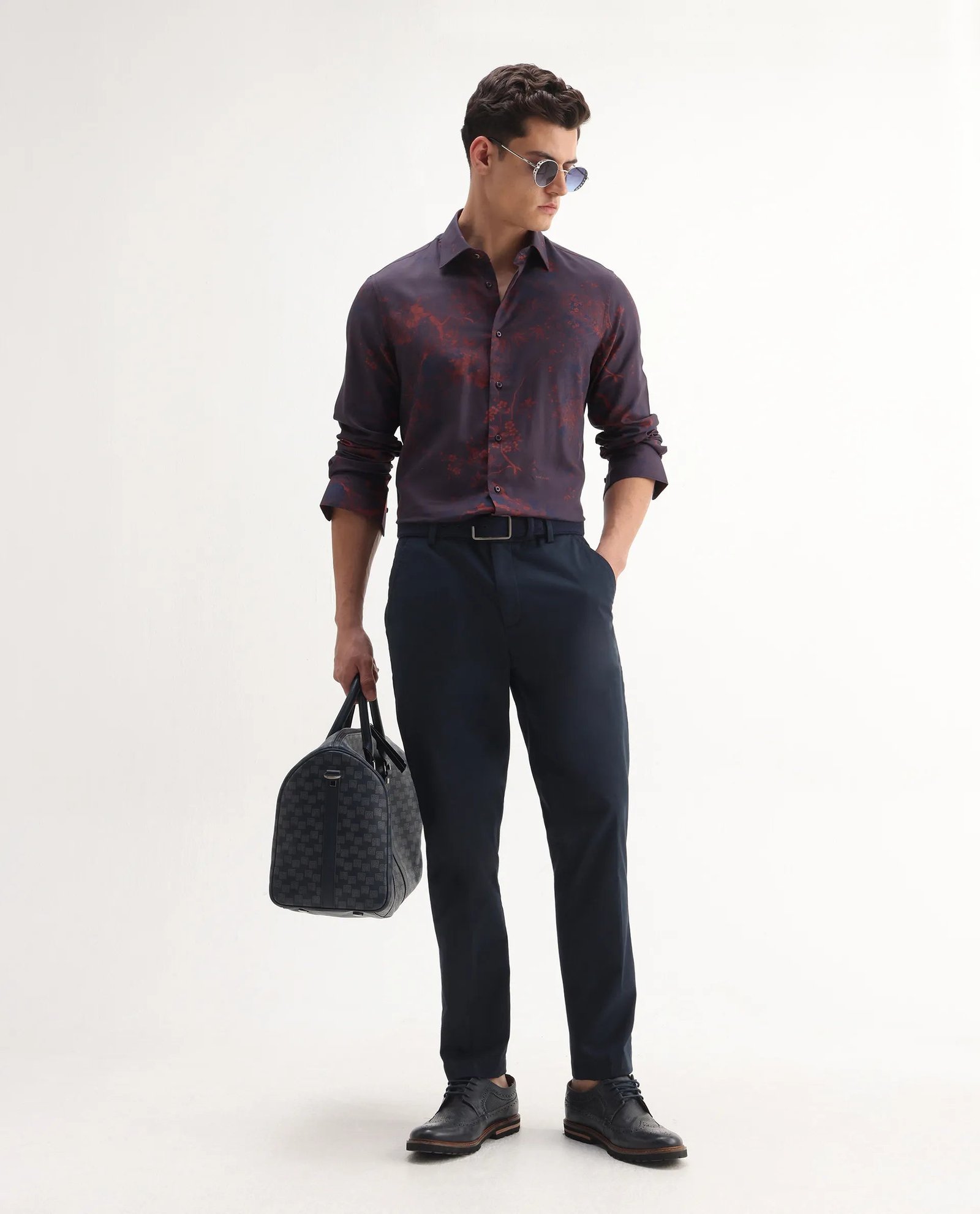 Elevate your wardrobe with the Rare Rabbit Men’s Luri Purple Shirt. crafted from soft viscose fabric for all-day comfort. Featuring a full sleeve design and a classic collared neck. this shirt showcases a refined floral print that adds a sophisticated touch. Ideal for both casual and semi-formal occasions. it combines style and ease. making it a versatile addition to your collection.